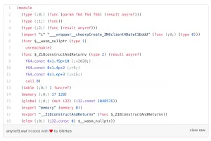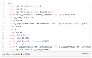 anyrefis to allow pointer of types in the client namespace to be passed to WebAssembly function as arguments (and returned as well):