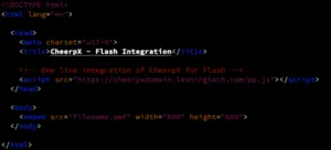 CheerpX for Flash is easily integrated on any existing HTML page that embeds Flash via the <embed><object> tags or swfobject.js library.