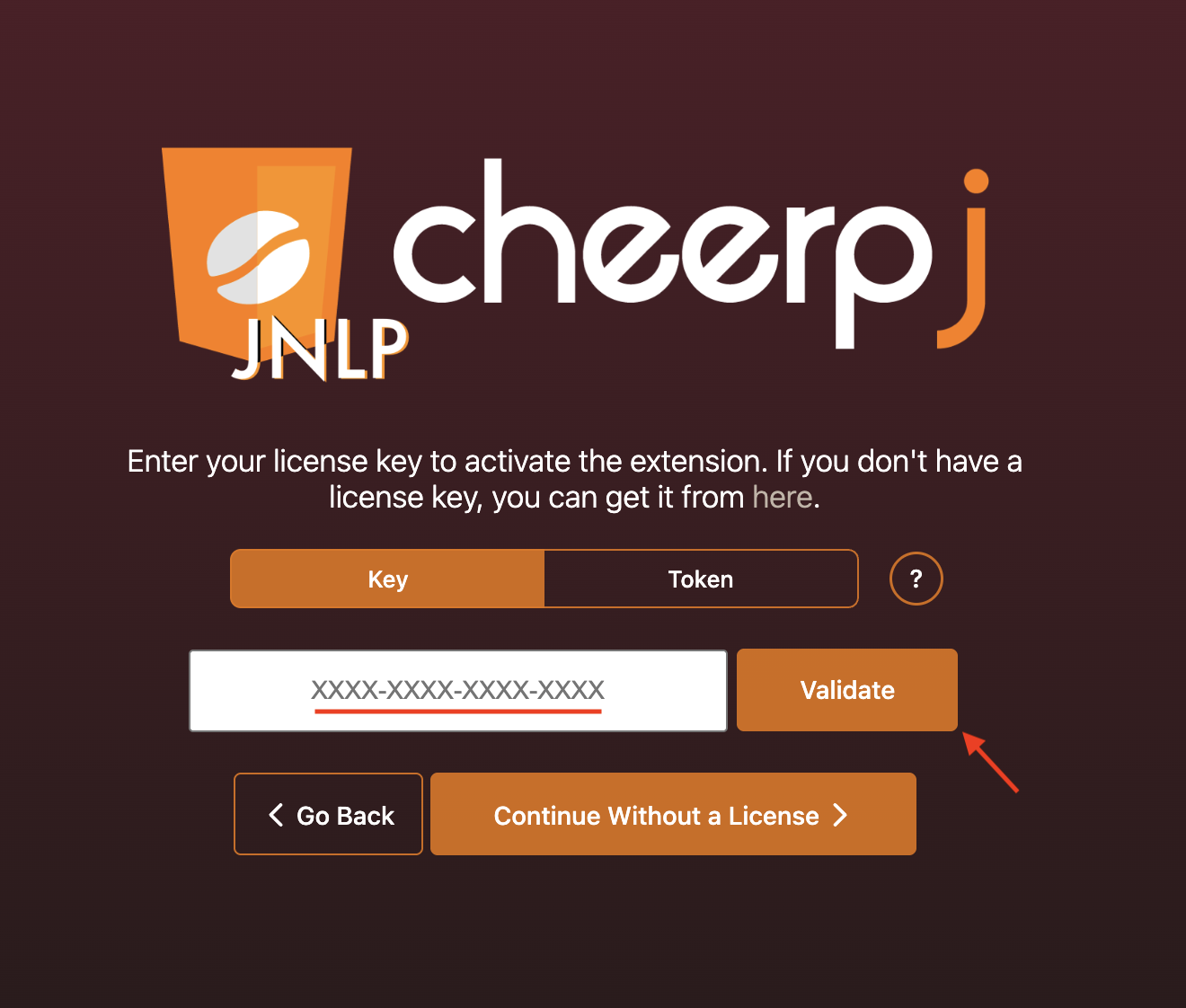 Once you click on the Manage License button, you will be redirected to the license activation screen. Here you can enter your license key or license token. Click on the link to purchase a license key.
